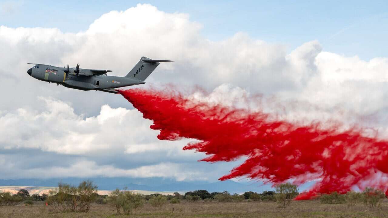 Over a period of two weeks, the A400M carried out a ground and flight-test campaign in south-western and central Spain, including six drops, three of which used red-coloured retardant and three using water.