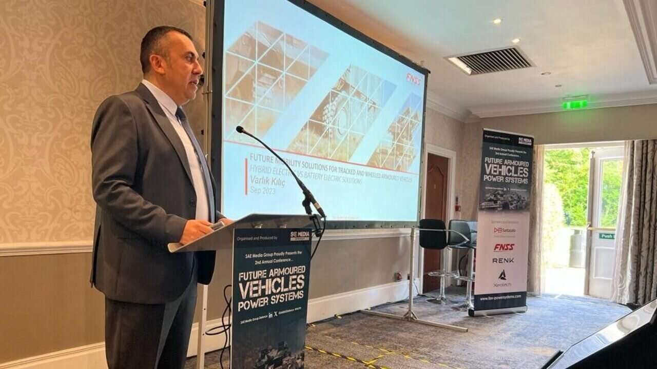 "FNSS E-Mobility and Advanced Design Solutions Manager Varlık KILIÇ made a presentation on "Future Mobility Solutions for Tracked and Wheeled Armoured Vehicles-Hybrid Electric/Full Electric Solutions" at the conference titled Future Armoured Vehicles Power Systems in Wokingham, UK."