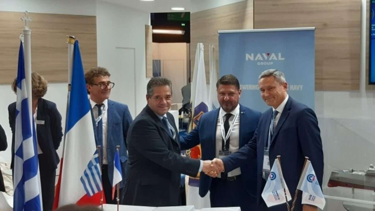 Eric Béranger, CEO of MBDA, and Dimtrios Dimitriou, Naval and EU Projects Manager of MILTECH at EURONAVAL 2022, signed the contract in the presence of M. Nikos Chardalias, Greek Deputy Minister of National Defence, and Admiral Aristeidis Alexopoulos, Director General of GDDIA (General Directorate For Defense Investments And Armaments).