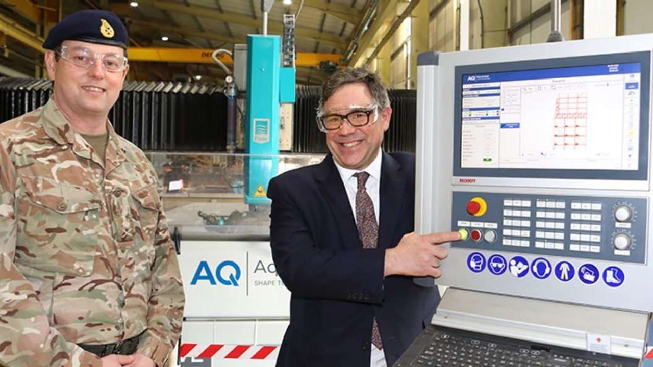 The group received an update on the Challenger 3 programme and addressed members of the Pearson Engineering workforce at the historic Newcastle site, before cutting the first piece of steel for the Challenger 3 turret structures using a water-jet cutter.
